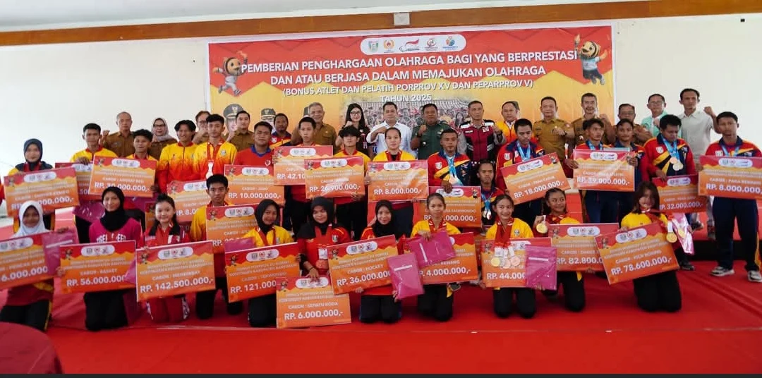 Penyerahan bonus dilakukan secara simbolis oleh Bupati Dr. H Askolani dan diakhiri dengan sesi foto bersama, sebagai bentuk apresiasi dan penghormatan atas perjuangan para atlet dan pelatih(red)