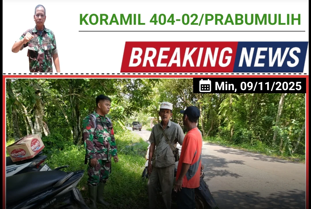 Kodam II/Sriwijaya, Prabumulih – Di saat banyak orang menikmati libur akhir pekan, seorang Babinsa di Prabumulih justru tak kenal lelah menjalankan tugasnya,” Kopka Hardi, seorang Bintara Pembina Desa (Babinsa) dari Kelurahan Payu Putat yang merupakan anggota Koramil 404-02/Prabumulih, Kodim 0404/Muara Enim, tetap aktif melaksanakan kegiatan Komunikasi Sosial (Komsos) di wilayah binaannya pada hari Minggu (09/11/2025).