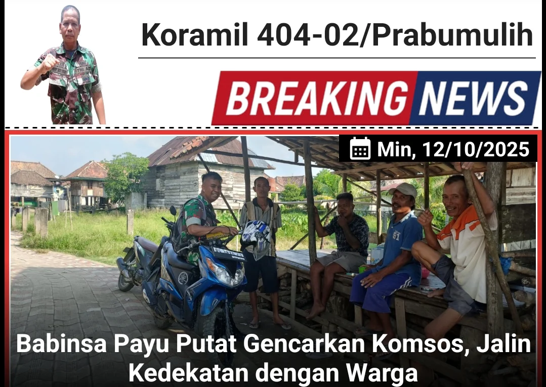 Kodam II /Sriwijaya, Prabumulih – Guna mempererat tali silaturahmi dan meningkatkan sinergitas dengan masyarakat, Babinsa Kelurahan Payu Putat, Kopka Hardi, anggota Koramil 404-02/Prabumulih Kodim 0404/Muara Enim, aktif melaksanakan kegiatan Komunikasi Sosial (Komsos) di wilayah binaannya. Kegiatan Komsos kali ini dilaksanakan di Kelurahan Payu Putat, Kecamatan Prabumulih Barat, Kota Prabumulih, pada Minggu (12 Oktober 2025).