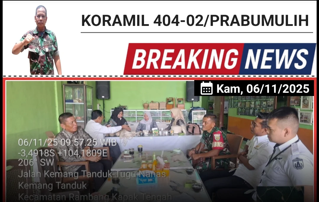 Kodam II/Sriwijaya, Prabumulih – Tak kenal lelah menjalin kedekatan dengan masyarakat, Serma Mukminan, Babinsa Desa Kemang Tanduk dari Koramil 404-02/Prabumulih, Kodim 0404/Muara Enim, kembali menggelar kegiatan Komunikasi Sosial (Komsos) di wilayah binaannya, Desa Kemang Tanduk, Kecamatan Rambang Kapak Tengah, Kota Prabumulih, pada Kamis (06/11/2025).