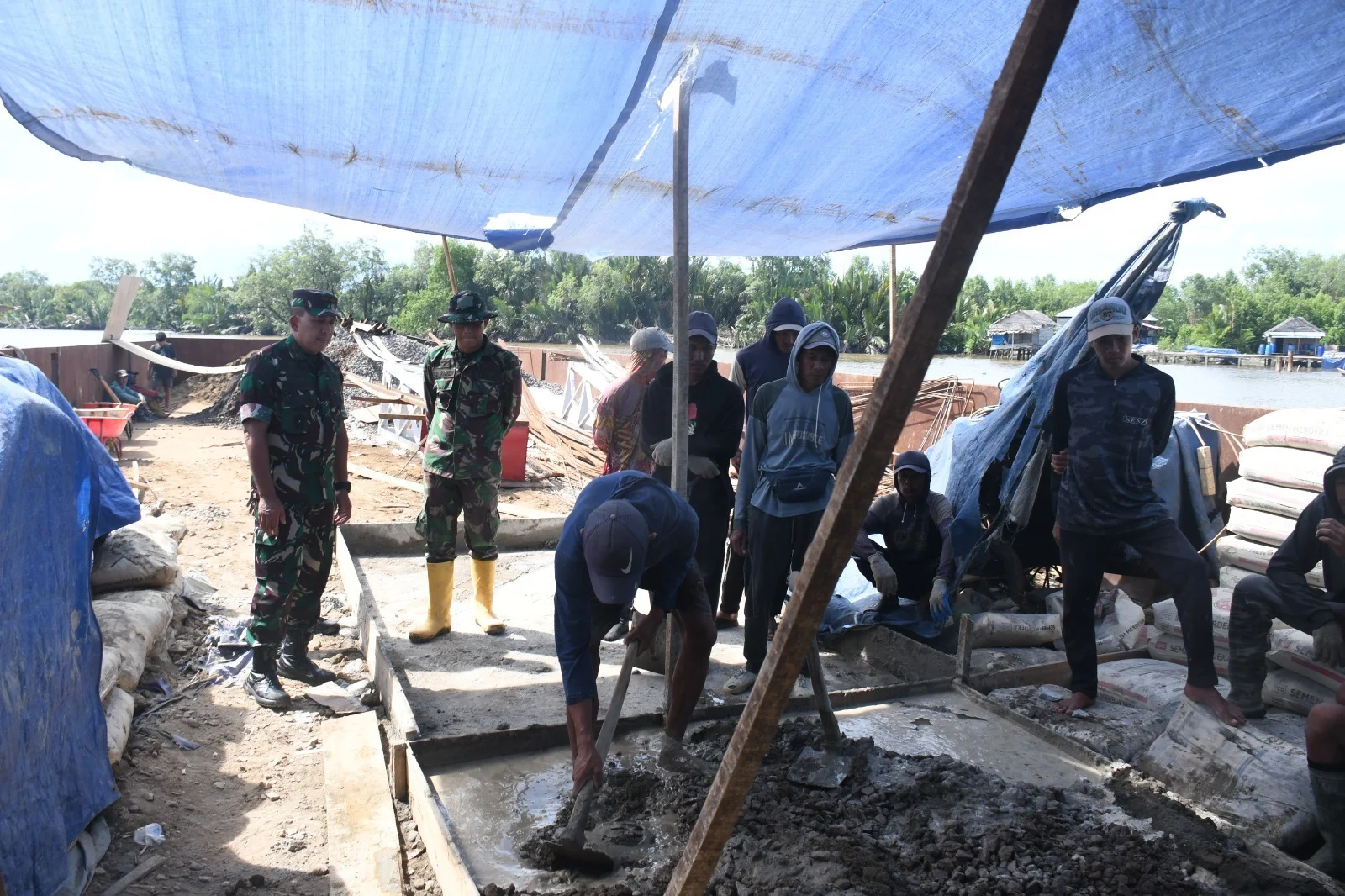 Dalam kunjungan tersebut, Danrem meninjau langsung progres pembangunan jembatan gantung yang berlokasi di Desa Kuala Dua Belas, Kecamatan Tulung Selapan, pada Sabtu (18 April 2026). Pembangunan jembatan ini menjadi salah satu upaya strategis untuk membuka akses transportasi sekaligus menunjang aktivitas perekonomian warga setempat.