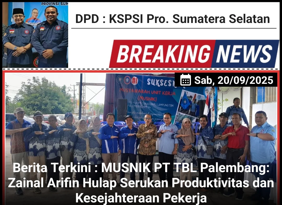 Palembang, Kompasnewsinvestigasi.id – Semangat kebersamaan dan harapan baru mewarnai Musyawarah Unit Kerja (MUSNIK) Pimpinan Unit Kerja Serikat Pekerja Rokok, Tembakau, Makanan dan Minuman (PUK SP RTMM SPSI) PT Tunas Baru Lampung (TBL) Cabang Palembang yang digelar hari ini, Sabtu (20/09/2025).