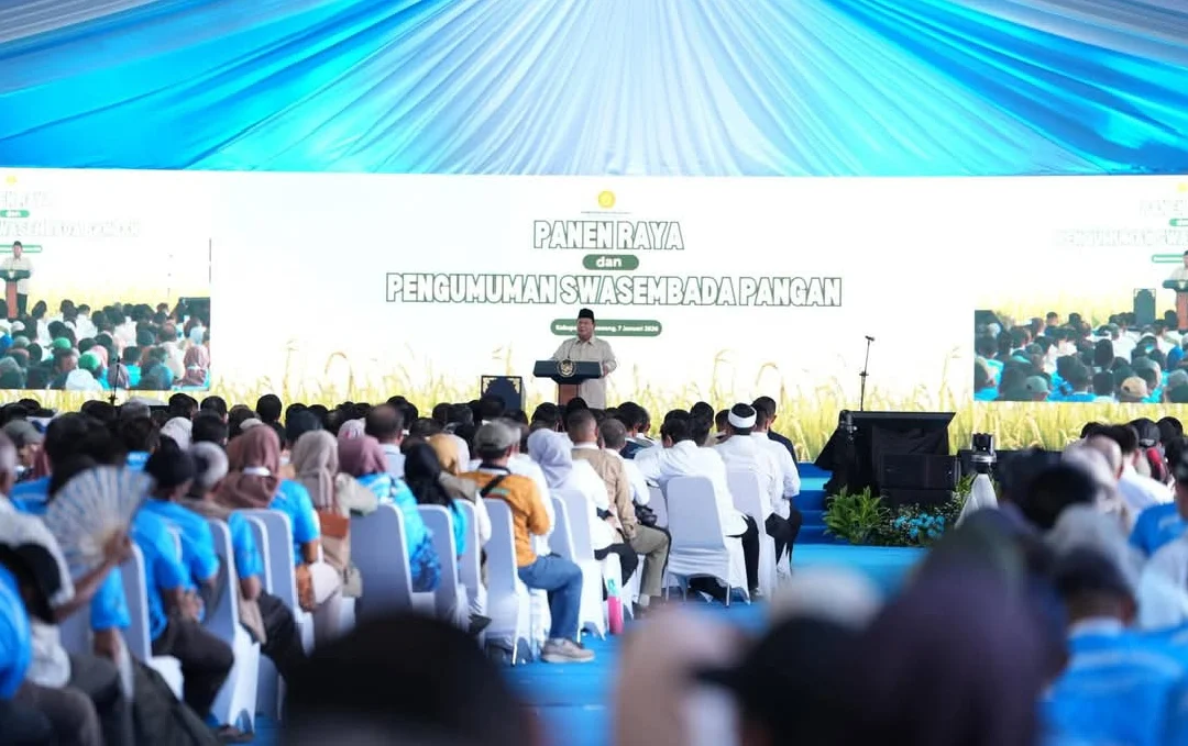 “Bahwa Indonesia berhasil kembali menjadi bangsa yang swasembada pangan,” tegas Presiden Prabowo di hadapan ribuan orang yang hadir.