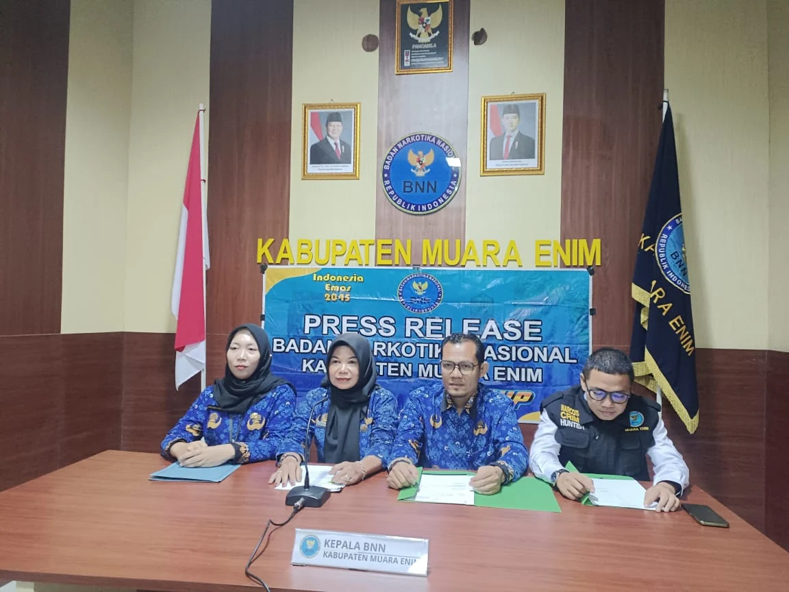 Muara Enim – Kompasnewsinvestigasi.id – Kepala BNN Muara Enim AKBP Erlangga. S.E.,M.H menggelar acara press release akhir tahun 2025 yang di wakili langsung oleh Arni Zulifah Martrianingsih, SE Kasubbag Umum BNNK Muara Enim yang berlangsung di Aula kantor BNN Muara Enim. Senin (22/12/2025).