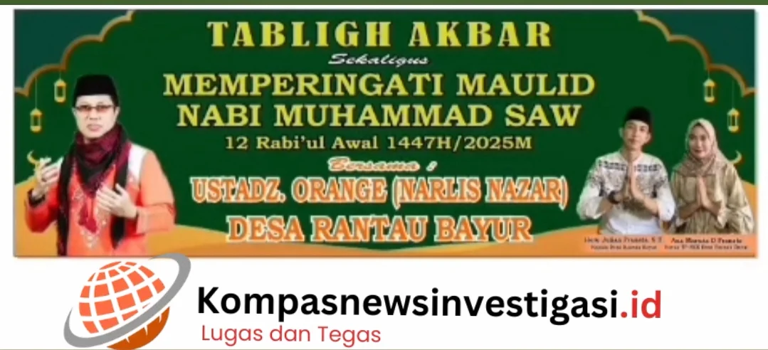 Banyuasin, Kompasnewsinvestigasi.id –Rantau Bayur, 20 September 2025 – Suasana khidmat dan penuh sukacita menyelimuti Desa Rantau Bayur, Banyuasin, Sumatera Selatan, malam ini. Pasalnya, sebuah acara tabligh akbar dalam rangka memperingati Maulid Nabi Muhammad SAW tengah berlangsung meriah di desa tersebut.