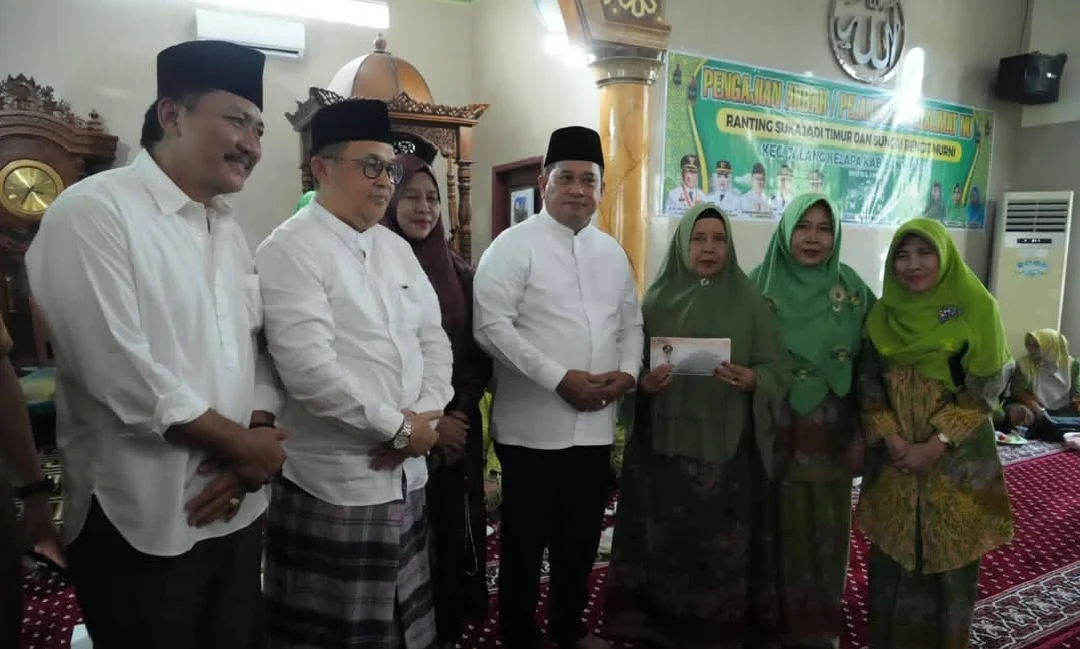 Kompasnewsinvestigasi. Id~Talang Kelapa — Bupati Banyuasin, Dr. H. Askolani, SH., MH menghadiri Pengajian Akbar dan Pelantikan Pengurus Ranting Muslimat Nahdhatul Ulama (NU) Kelurahan Sukajadi Timur Kabupaten Banyuasin digelar di Masjid Jamiatul Khoir, Kecamatan Talang Kelapa, Banyuasin, Selasa (16/12/2025).