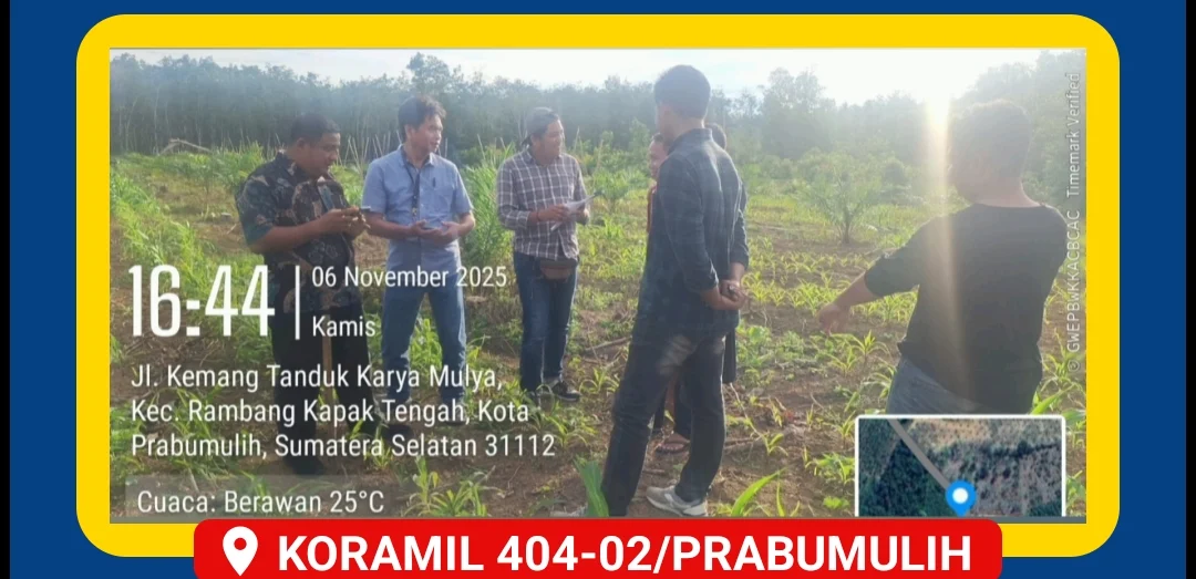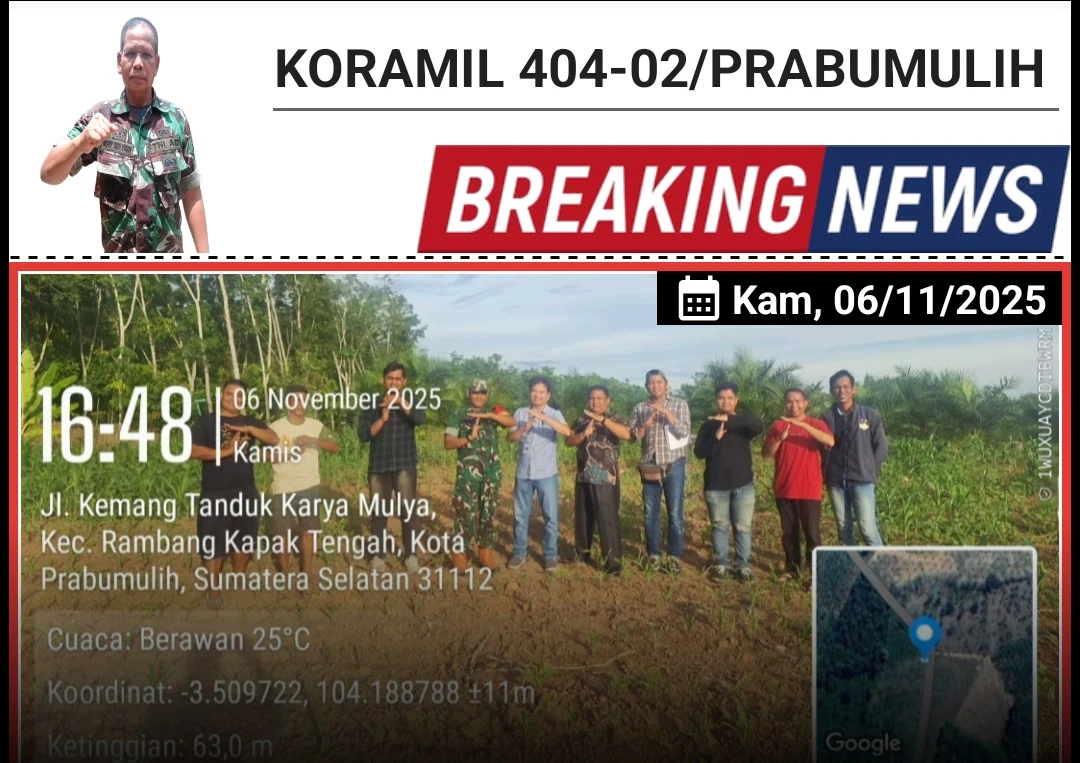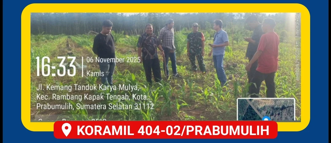 Kodam II/Sriwijaya, Prabumulih – Mimpi Desa Kemang Tanduk, Kecamatan Rambang Kapak Tengah, Kota Prabumulih, untuk menjadi pusat pangan mandiri semakin nyata! Serma Mukminan, Babinsa Desa Kemang Tanduk dari Koramil 404-02/Prabumulih, Kodim 0404/Muara Enim, hadir langsung mengawal percepatan pembangunan Kawasan Desa Korporasi Mandiri Pangan (KDKMP) pada Kamis, 6 November 2025.