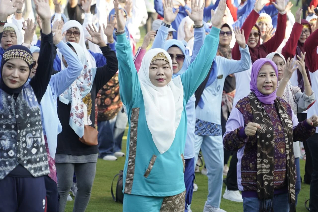 Atmosfer kemeriahan sudah terasa sejak awal kegiatan. Ribuan peserta yang didominasi kaum perempuan tampil penuh semangat, mengikuti setiap gerakan dengan kompak, energik, dan penuh keceriaan.
