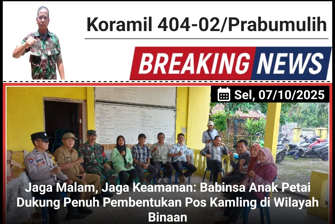 Kodam II/Sriwijaya, Prabumulih – Demi mewujudkan lingkungan yang aman dan kondusif, Babinsa Kelurahan Anak Petai, Serma Ahmad dari Koramil 404-02/Prabumulih Kodim 0404/Muara Enim, turut serta dalam rapat pembentukan wacana pos kamling di wilayah binaannya, Kelurahan Anak Petai, Kecamatan Prabumulih Utara, Kota Prabumulih. Rapat penting ini berlangsung pada hari Selasa (07/10/2025).