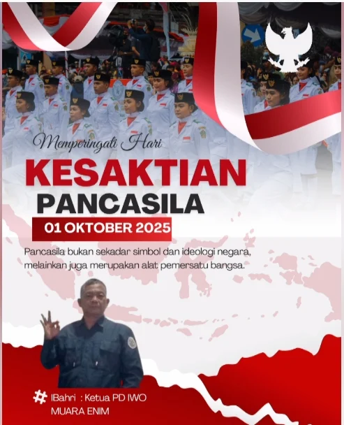 Dalam rangka memperingati Hari Kesaktian Pancasila yang jatuh pada hari Rabu, 1 Oktober 2025, Ketua Pimpinan Daerah (PD) Ikatan Wartawan Online (IWO) Muara Enim, Bahri (Koyong Bahri), mengajak seluruh wartawan online untuk terus menjunjung tinggi nilai-nilai Pancasila dalam setiap karya jurnalistik.