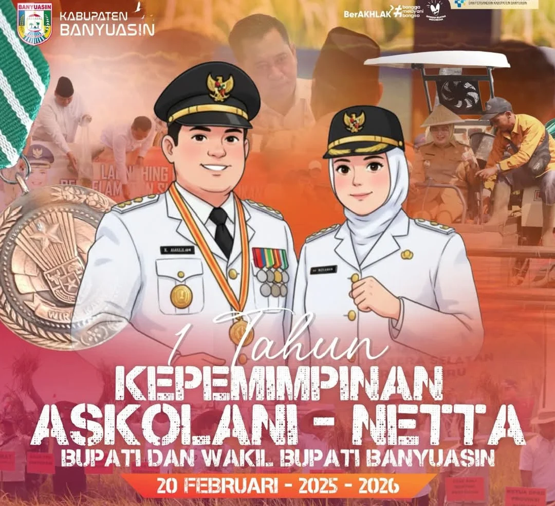 Kompasnewsinvestigasi. Id~BANYUASIN – Tercatat sudah satu tahun, pasangan kepala daerah Kabupaten Banyuasin, Dr H Askolani, SH, MH dan Netta Indian , Sp mengabdi untuk Kabupaten Banyuasin.