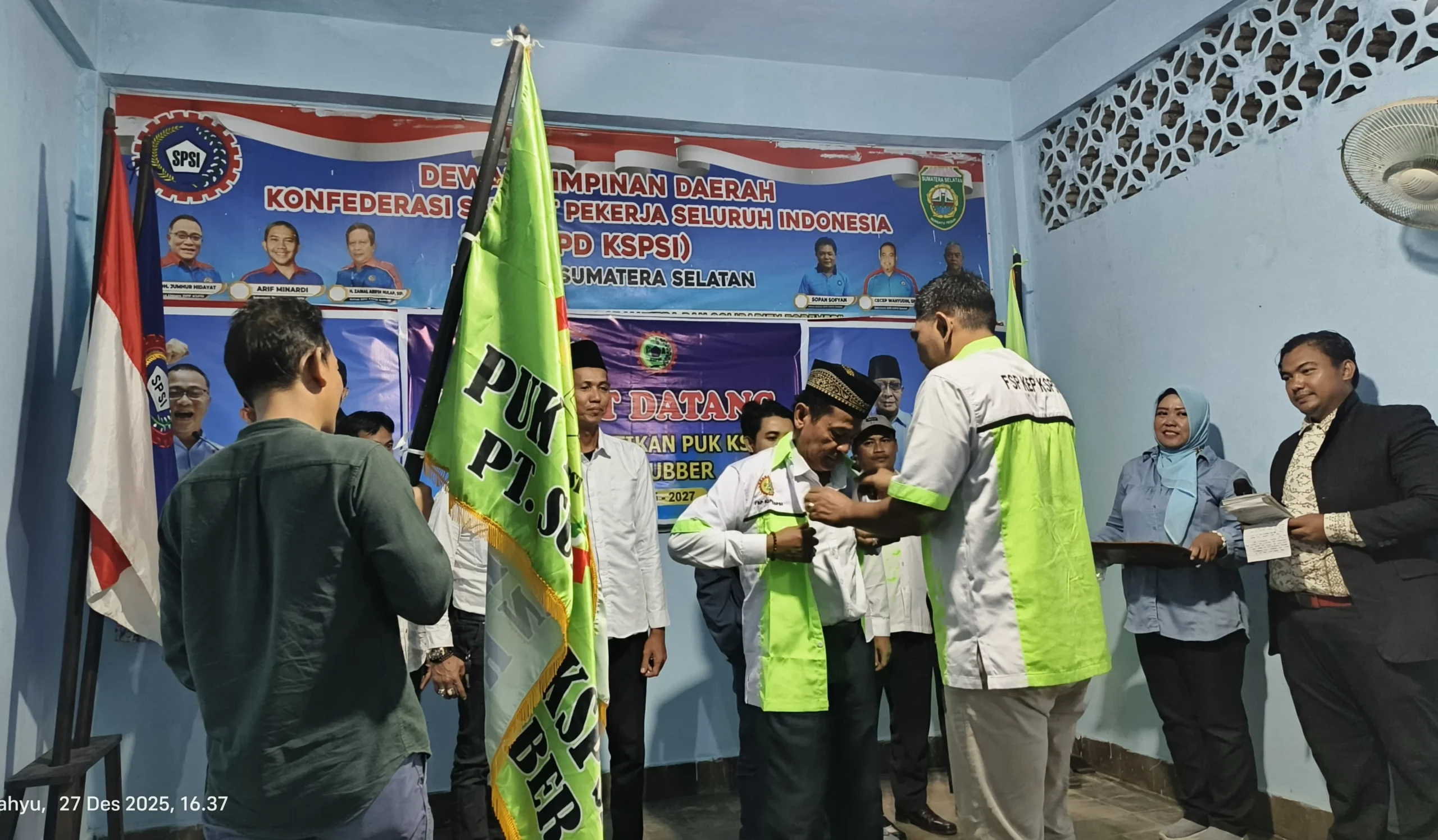 Kompasnewsinvestigasi. Id~Palembang, Federasi Serikat Pekerja Kimia, Energi, dan Pertambangan (FSP KEP) resmi melantik Pimpinan Unit Kerja (PUK) PT Sunan Rubber periode 2025-2027, acara yang berlangsung khidmat dan tertib. Kegiatan pelantikan dilaksanakan di Kantor Sekretariat DPD KSPSI Jl. Veteran pada Sabtu (27/12/2025) dan dihadiri oleh Ketua DPD KSPSI JH Sumsel H Zainal Arifin Hulap, Sekretaris DPD KSPSI JH Sumsel Cecep Wahyudin, SP dan Ketua PD FSP jajaran pengurus federasi serta anggota serikat pekerja dan tamu undangan.