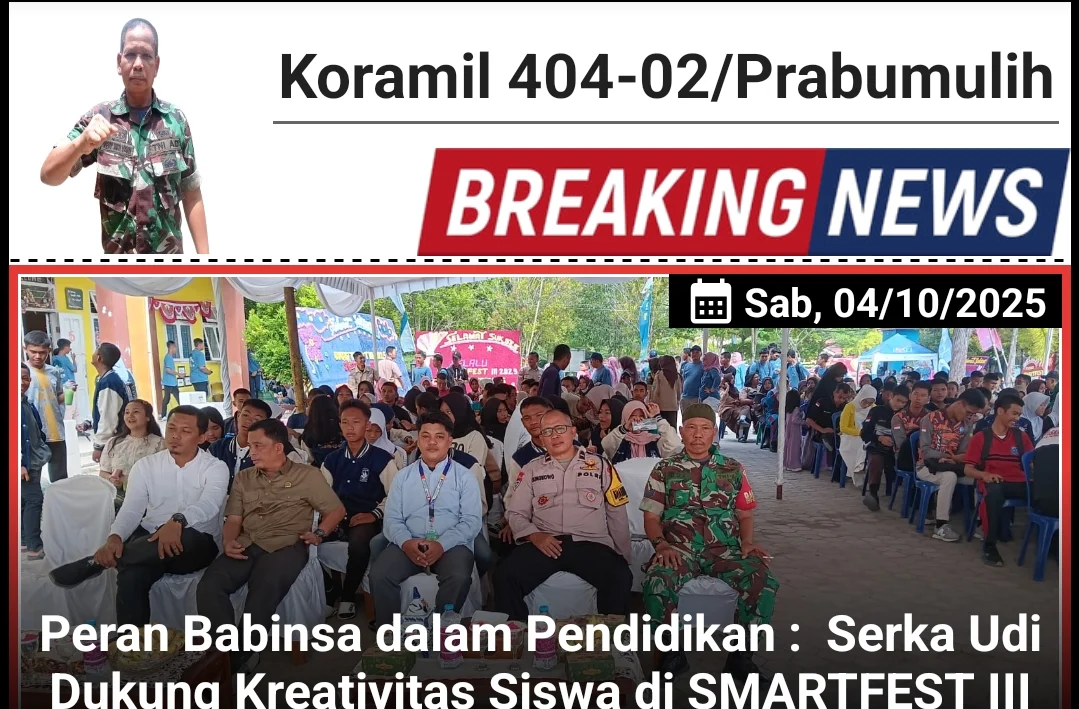Kodam II/Sriwijaya, Prabumulih – Serka Udi, Babinsa dari Kelurahan Muara Dua yang merupakan bagian dari Koramil 404-02/Prabumulih, turut hadir dalam acara SMARTFEST III yang digelar di SMA Negeri 7 Prabumulih pada Sabtu (04/10/2025).