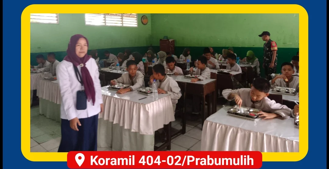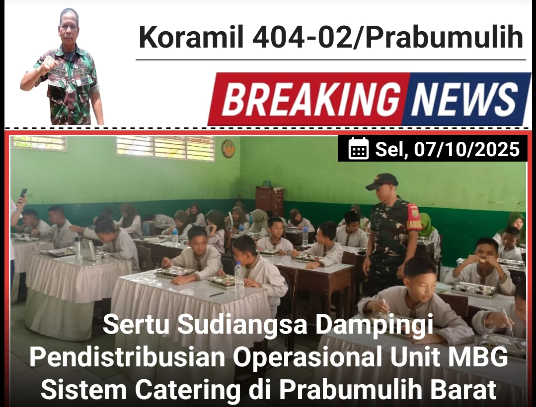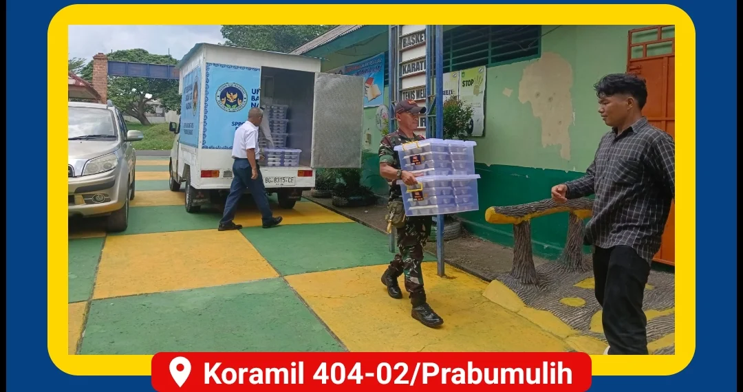 Kodam II/Sriwijaya, Prabumulih – Sertu Sudiangsa, Babinsa Koramil 404-02/Prabumulih Kodim 0404/Muara Enim, melaksanakan pendampingan dalam kegiatan pendistribusian operasional Unit MBG (Makanan Bergizi) dengan sistem Catering (Mandiri) di wilayah Kodim 0404/Muara Enim. Kegiatan ini dilaksanakan pada hari Selasa, 07 Oktober 2025, mulai pukul 11.30 WIB hingga selesai.