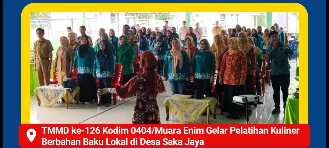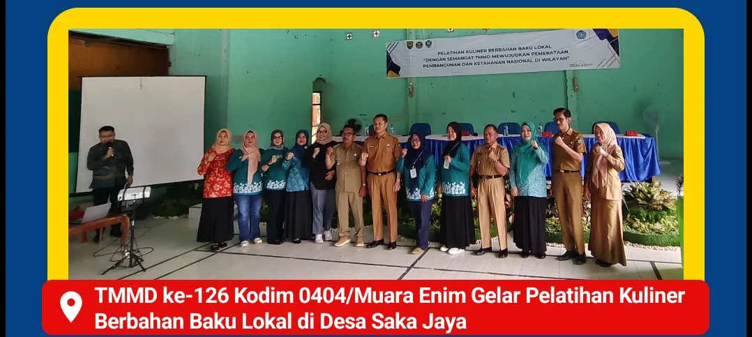 MUARA ENIM, – Sebagai bagian dari program Tentara Manunggal Membangun Desa (TMMD) ke-126 TA 2025, Kodim 0404/Muara Enim menggelar pelatihan kuliner berbahan baku lokal di Desa Saka Jaya, Kecamatan Muara Enim, Kabupaten Muara Enim, pada Selasa, 28 Oktober 2025.