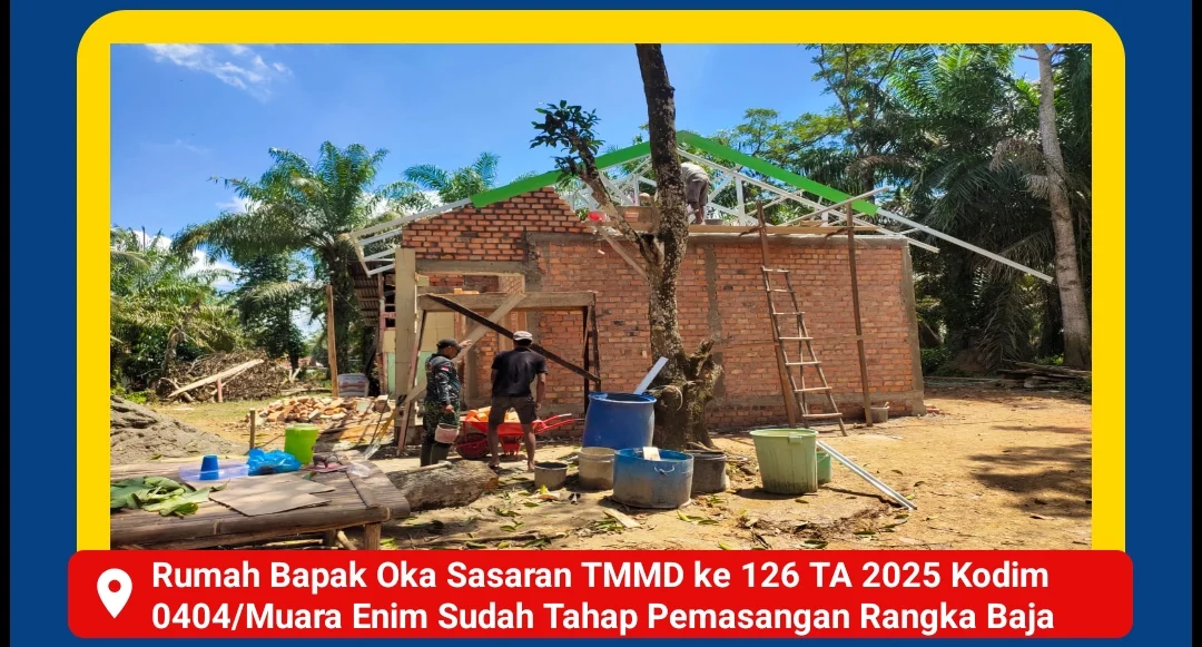 Muara Enim , Kompasnewsinvestigasi.id – Program TNI Manunggal Membangun Desa (TMMD) terus membuktikan diri sebagai motor penggerak pembangunan dan peningkatan kesejahteraan masyarakat di berbagai pelosok negeri. Di Kabupaten Muara Enim, program ini menyentuh langsung kehidupan Bapak Oka Maradela, seorang warga Dusun 4 RT 9 Desa Sakajaya, Kecamatan Muara Enim, yang rumahnya kini sedang direnovasi melalui program Rumah Tidak Layak Huni (RTLH).