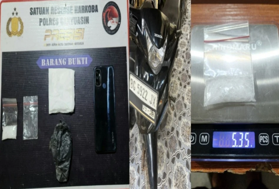 Kompasnewsinvestigasi. Id~Banyuasin – Jajaran Satuan Reserse Narkoba (Satresnarkoba) Polres Banyuasin kembali mengungkap kasus tindak pidana narkotika. Seorang pria berinisial ESS (47) , warga Desa Meranti, Kecamatan Suak Tapeh, Kabupaten Banyuasin, diringkus di pinggir jalan Desa Biyuku, Kecamatan Suak Tapeh, pada Rabu (22/4/2026) sekitar pukul 17.00 WIB. Dari tangan pelaku, petugas menyita barang bukti berupa satu paket narkotika jenis sabu dengan berat bruto 5,35 gram.